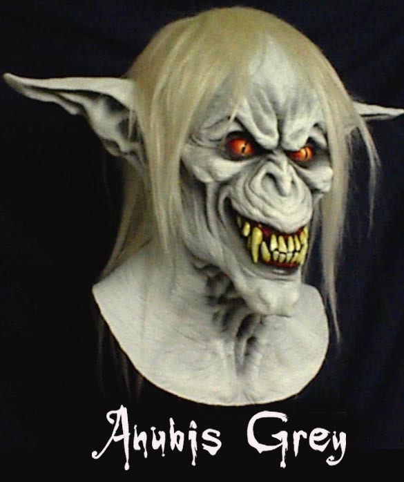 Wearable masks have vision slits cut in the deep crease between the eye and brow, breathing holes cut, and are cut up the back.