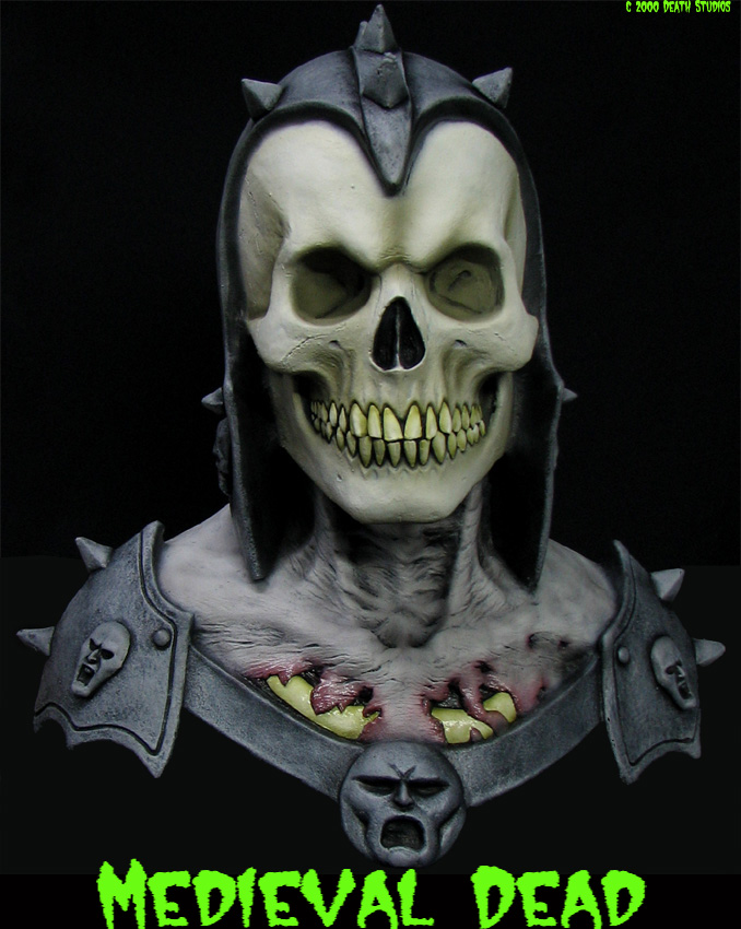 | Corpse Hands are available to match this mask in the "Chests and Hands" section. Wearable masks have hidden view slits located in the dark crease between the eyes and the eyebrow. Display versions have no breathing or vision slits. Mask sculpture by Jeff Death. |